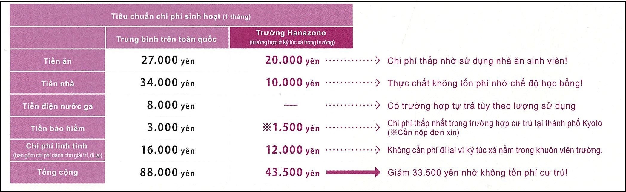 (Bảng so sánh chi phí sinh hoạt 1 tháng tại trường Hanazono và các khu vực khác trên toàn nước Nhật)